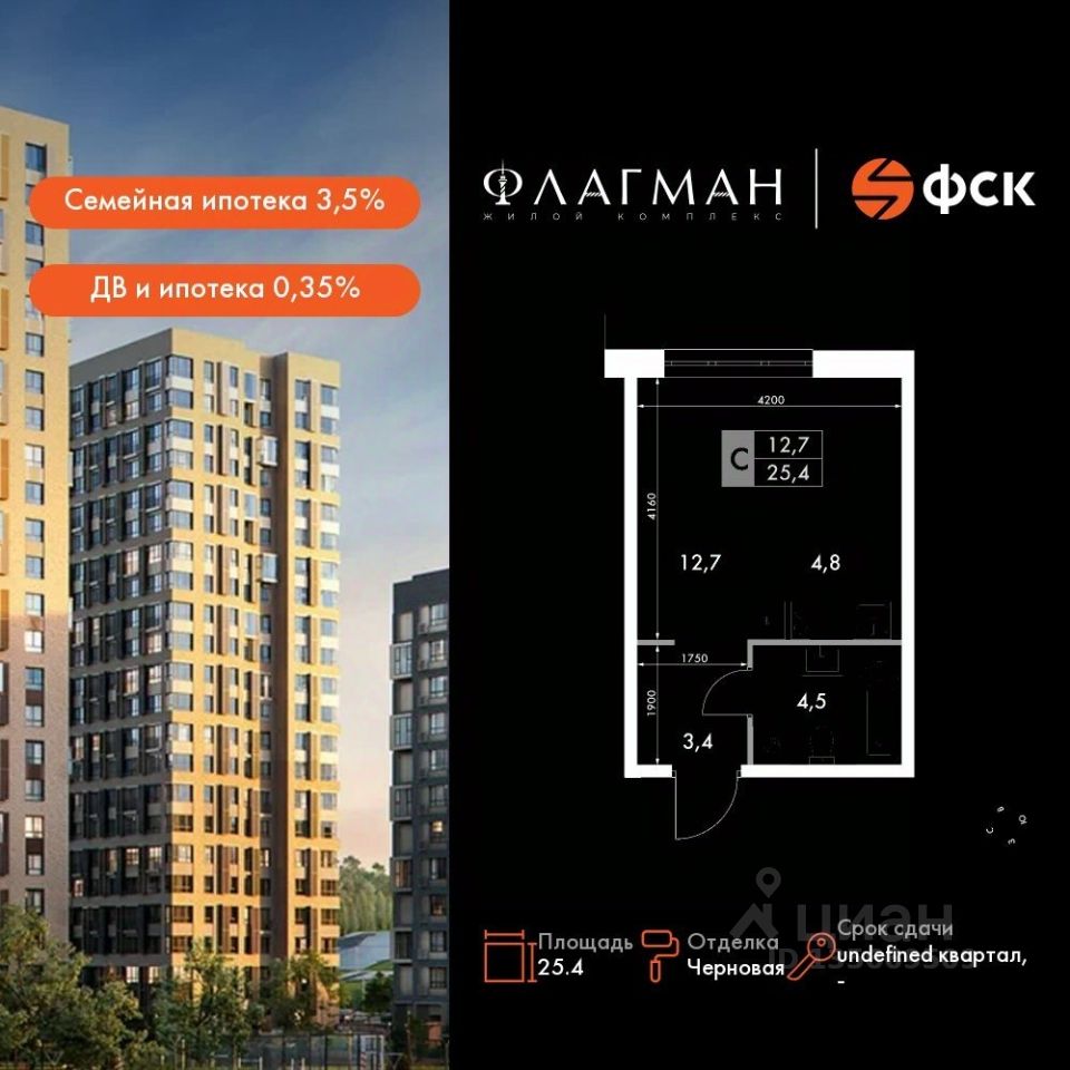 Продаётся 1-к квартира номер 605 общей площадью 25.4 кв.м. на 9-м этаже 12 этажного дома. Отделка Whitebox. Цена с учётом скидки!