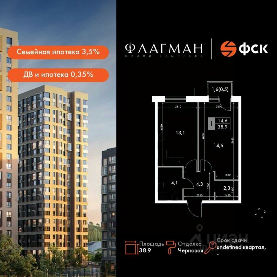 Продаётся 1-к квартира номер 76 общей площадью 38.9 кв.м. на 8-м этаже 24 этажного дома. Отделка Whitebox. Цена с учётом скидки!