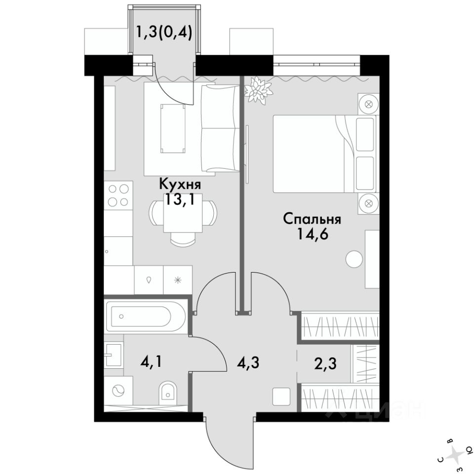 Продаётся 1-к квартира номер 100 общей площадью 38.8 кв.м. на 10-м этаже 24 этажного дома. Отделка Whitebox. Цена с учётом скидки!