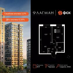 Продаётся 2-к квартира номер 137 общей площадью 40.9 кв.м. на 13-м этаже 24 этажного дома. Отделка Whitebox. Цена с учётом скидки!