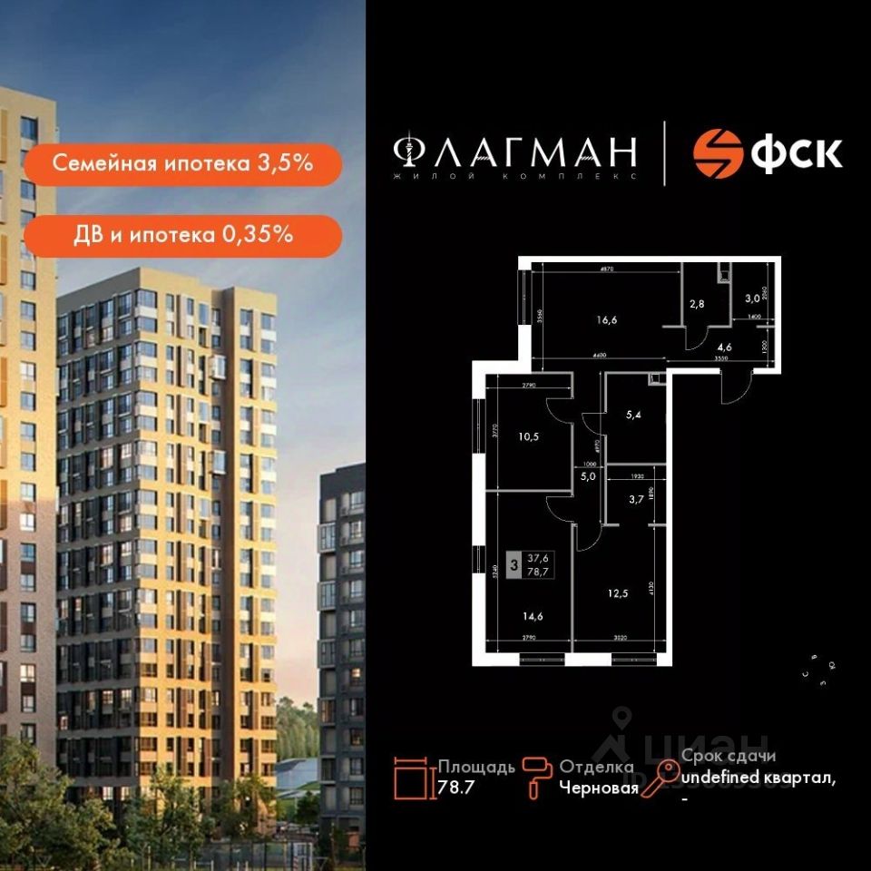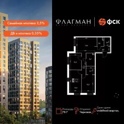 Продаётся 3-к квартира номер 73 общей площадью 78.7 кв.м. на 7-м этаже 24 этажного дома. Отделка Whitebox. Цена с учётом скидки!