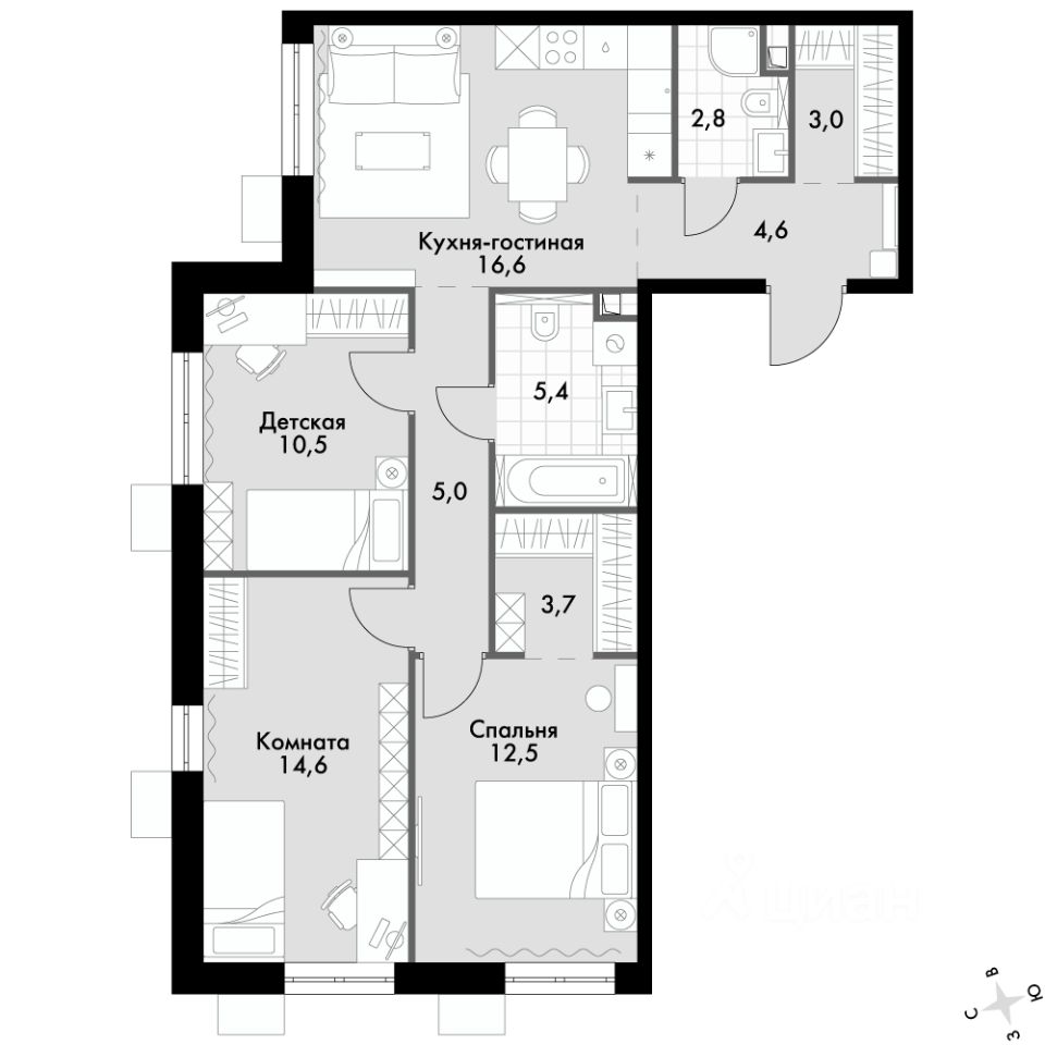 - Угловая планировка - больше пространства для ваших идей.