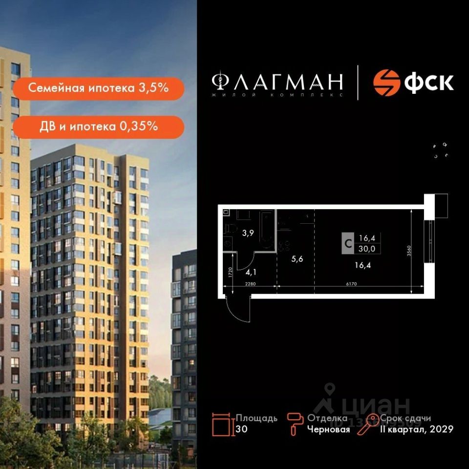Продаётся 1-к квартира номер 91 общей площадью 30 кв.м. на 9-м этаже 30 этажного дома. Отделка Whitebox. Цена с учётом скидки!