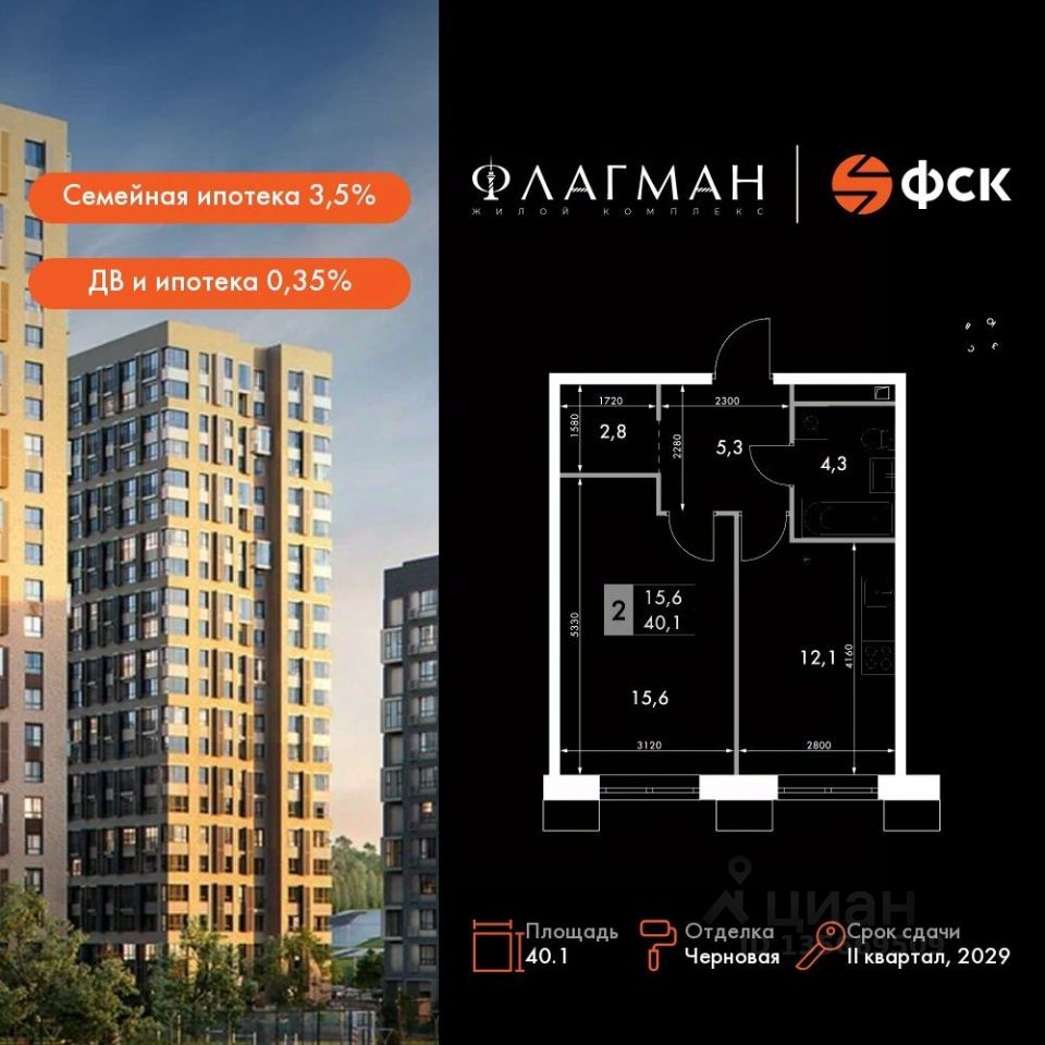 Продаётся 1-к квартира номер 117 общей площадью 40.1 кв.м. на 11-м этаже 30 этажного дома. Отделка Whitebox. Цена с учётом скидки!