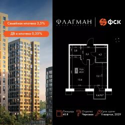 Продаётся 1-к квартира номер 177 общей площадью 40.8 кв.м. на 16-м этаже 30 этажного дома. Отделка Whitebox. Цена с учётом скидки!
