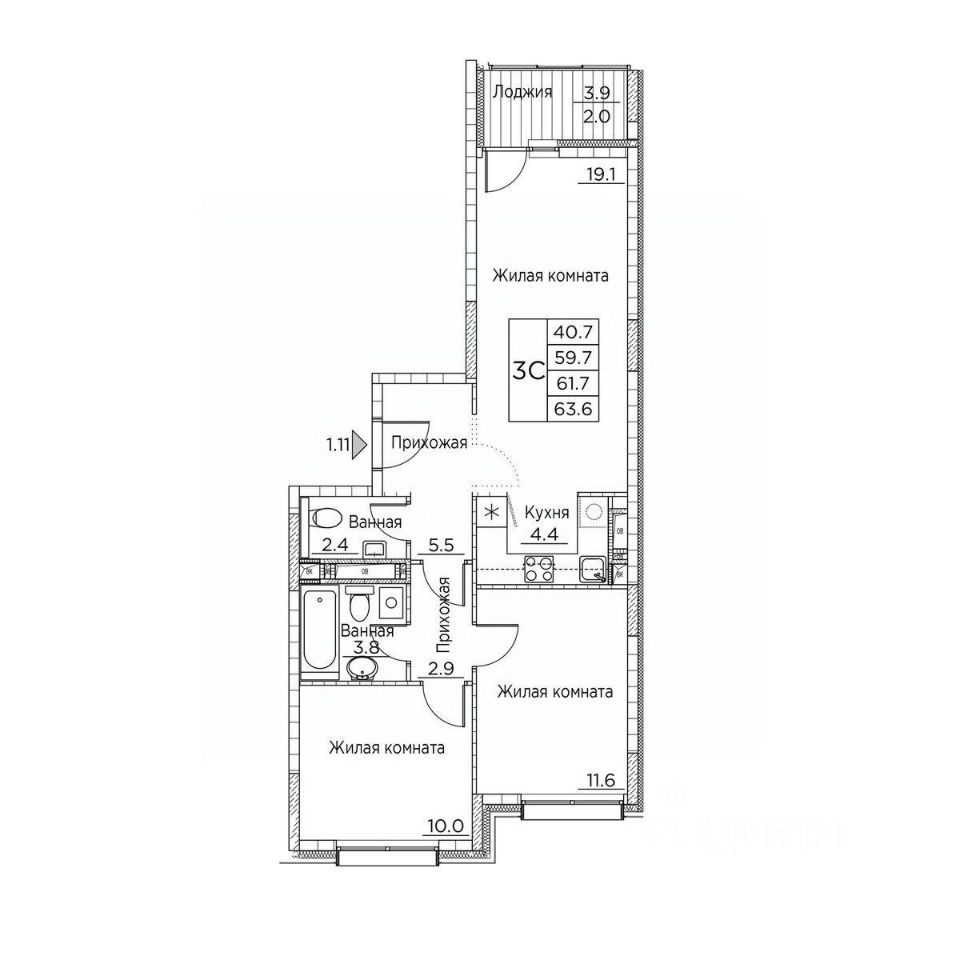 Общая площадь63,6 м²