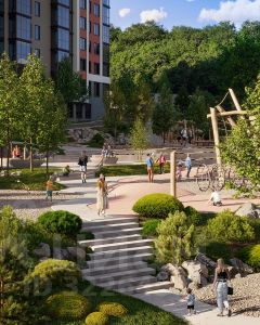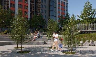 - Приватный безопасный каскадный двор-парк площадью более 4000м2, спроектирован как отдельный архитектурный объект с зонами, включающими в себя целый комплекс оборудования для детей и взрослых, озеленением и современным освещением, благодаря которому будет приятно гулять и отдыхать во дворе в вечернее и ночное время;