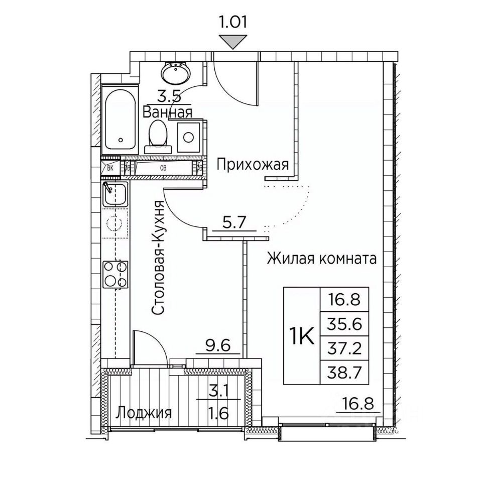 Общая площадь38,7 м²