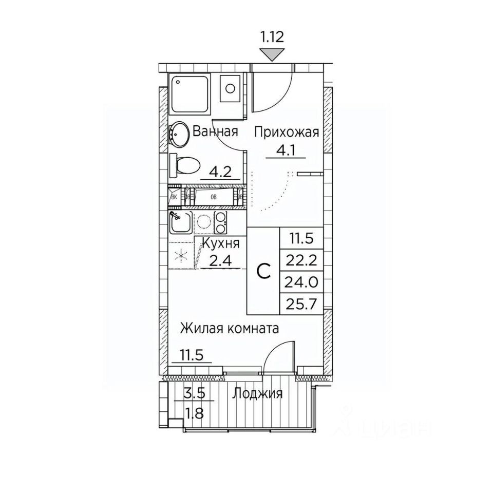Общая площадь25,7 м²
