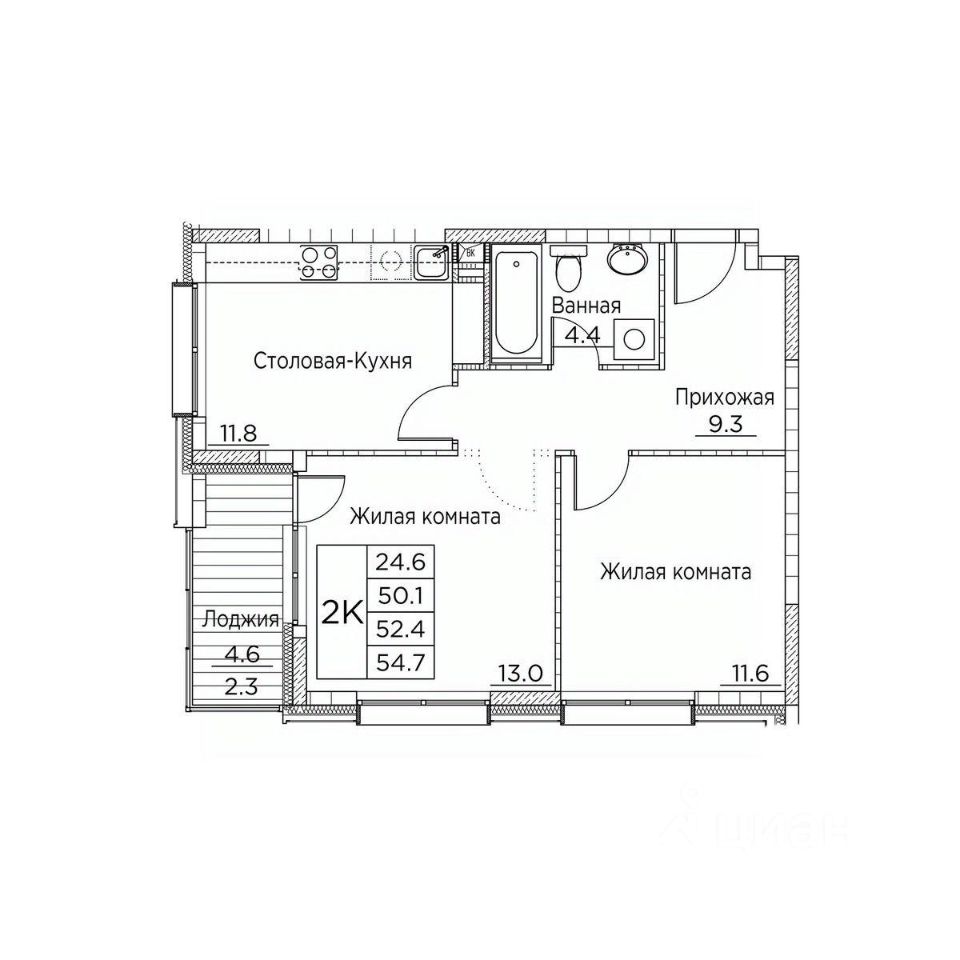 Общая площадь54,1 м²