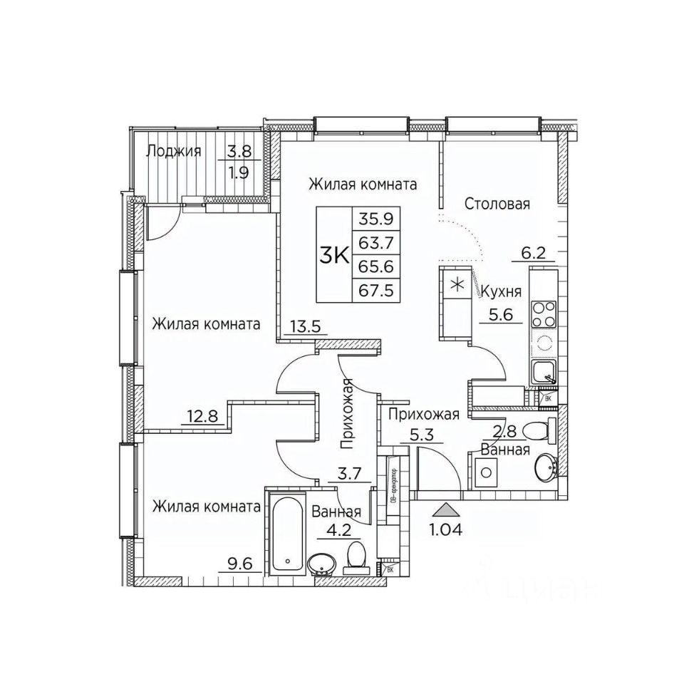 Общая площадь66,8 м²