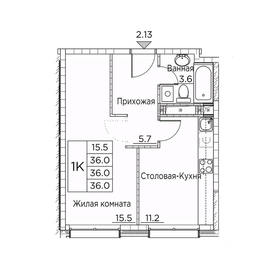 Общая площадь36 м²
