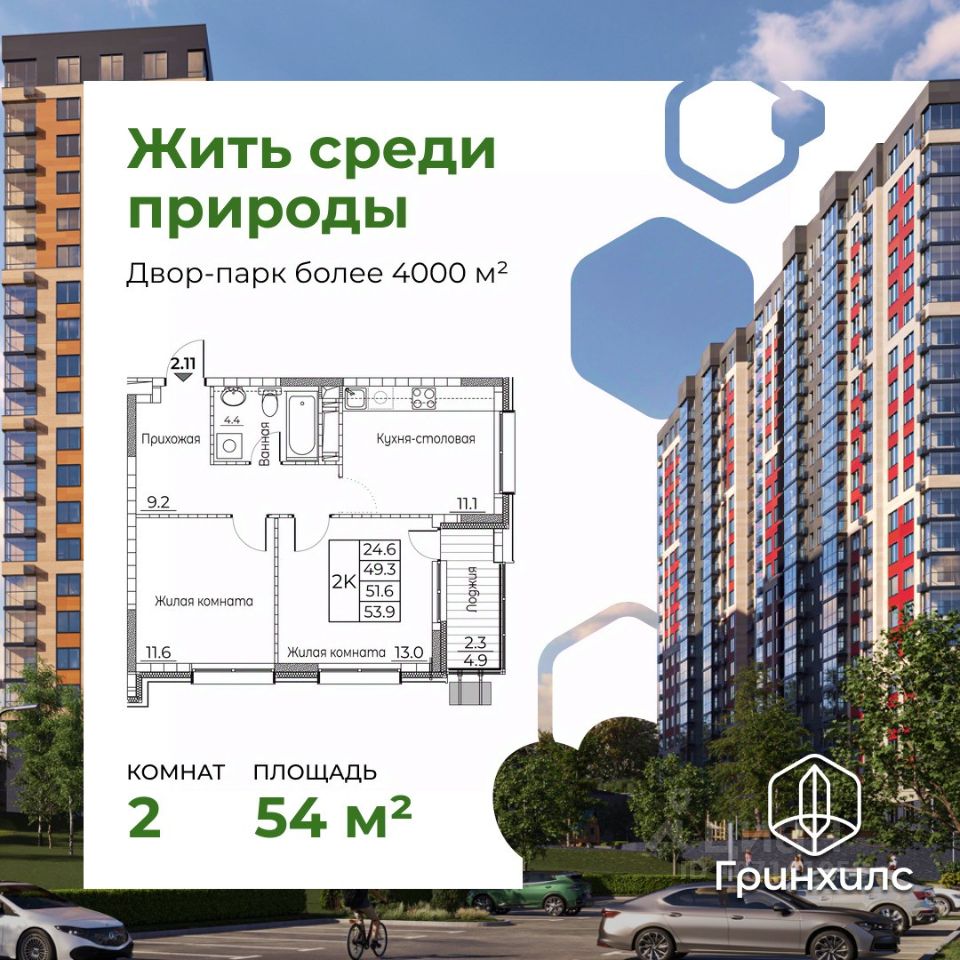 Продается 2-к квартира с отделкой под ключ в ЖК "Гринхилс".