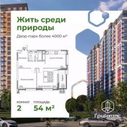 Общая площадь квартиры — 54 кв. м, этаж 6 из 21.
