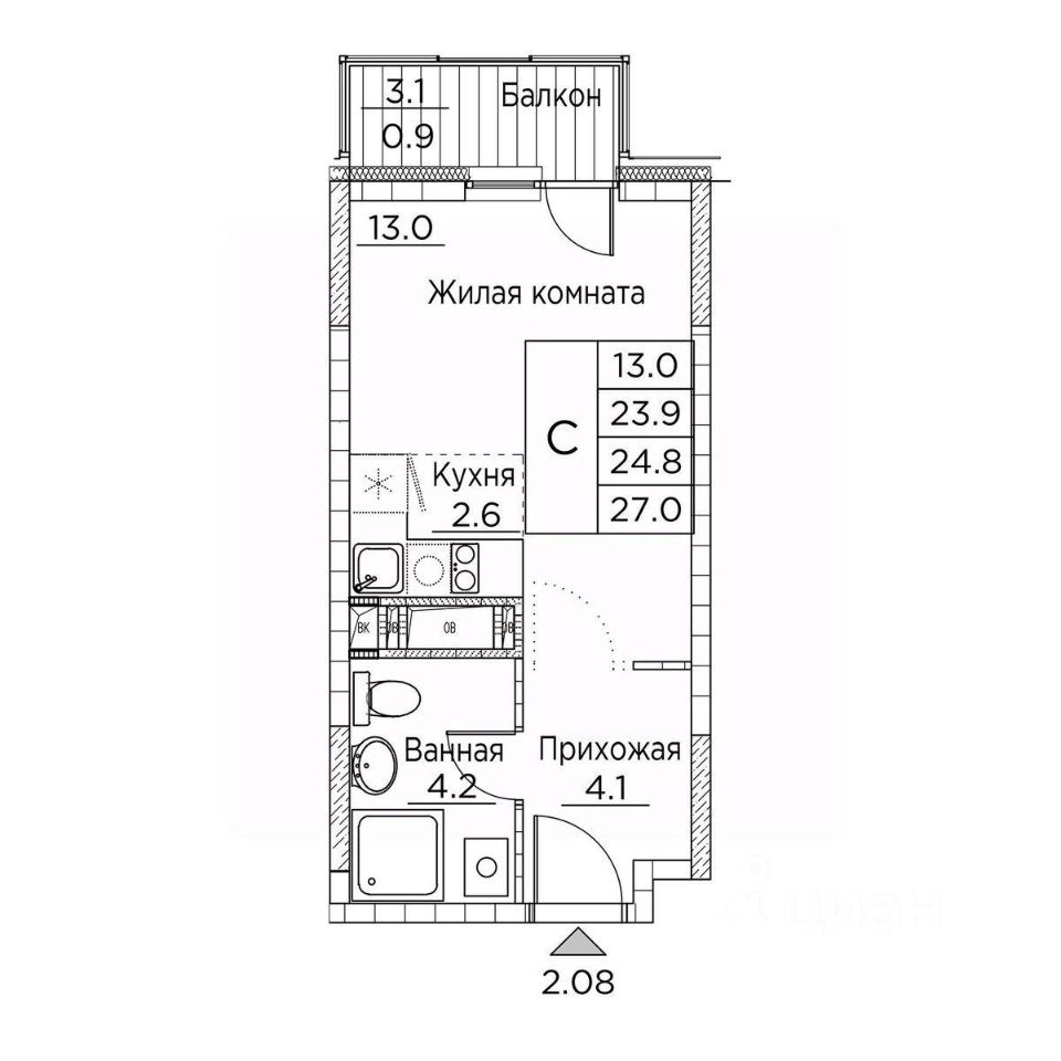 Общая площадь27 м²