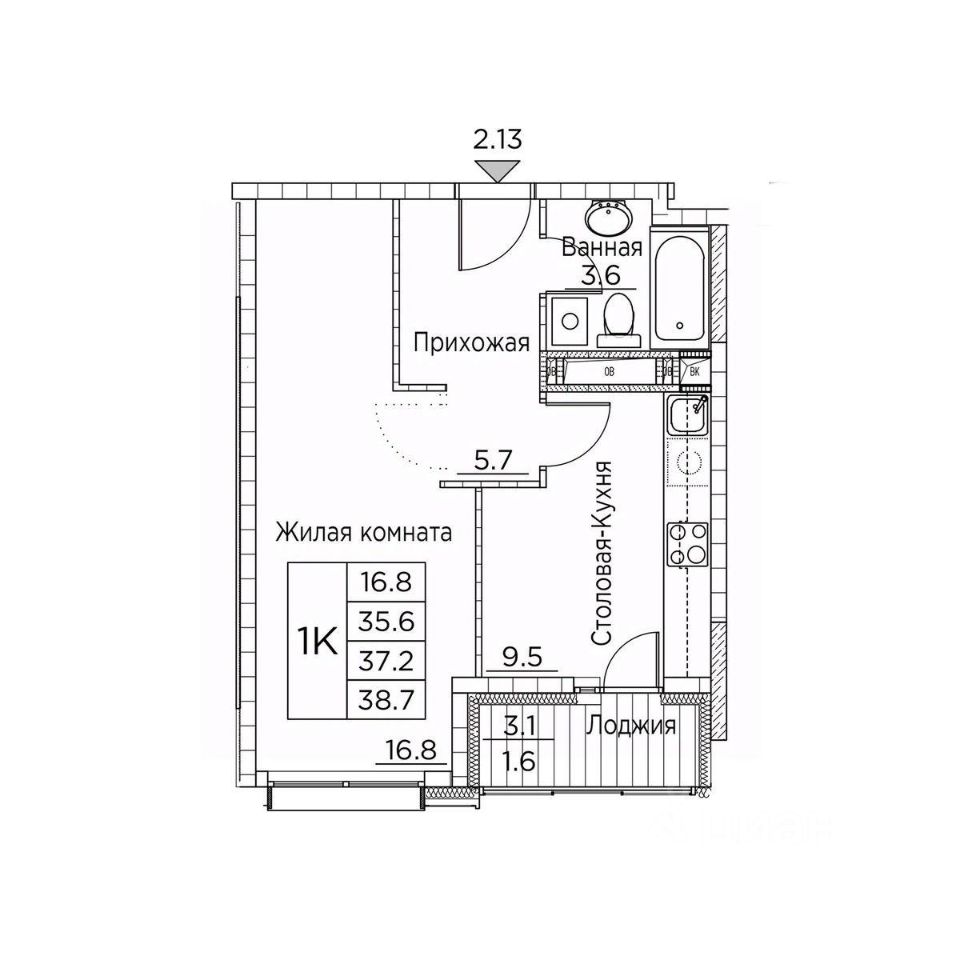 Общая площадь38,7 м²
