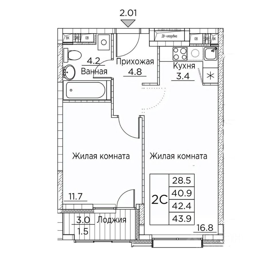 Общая площадь43,9 м²