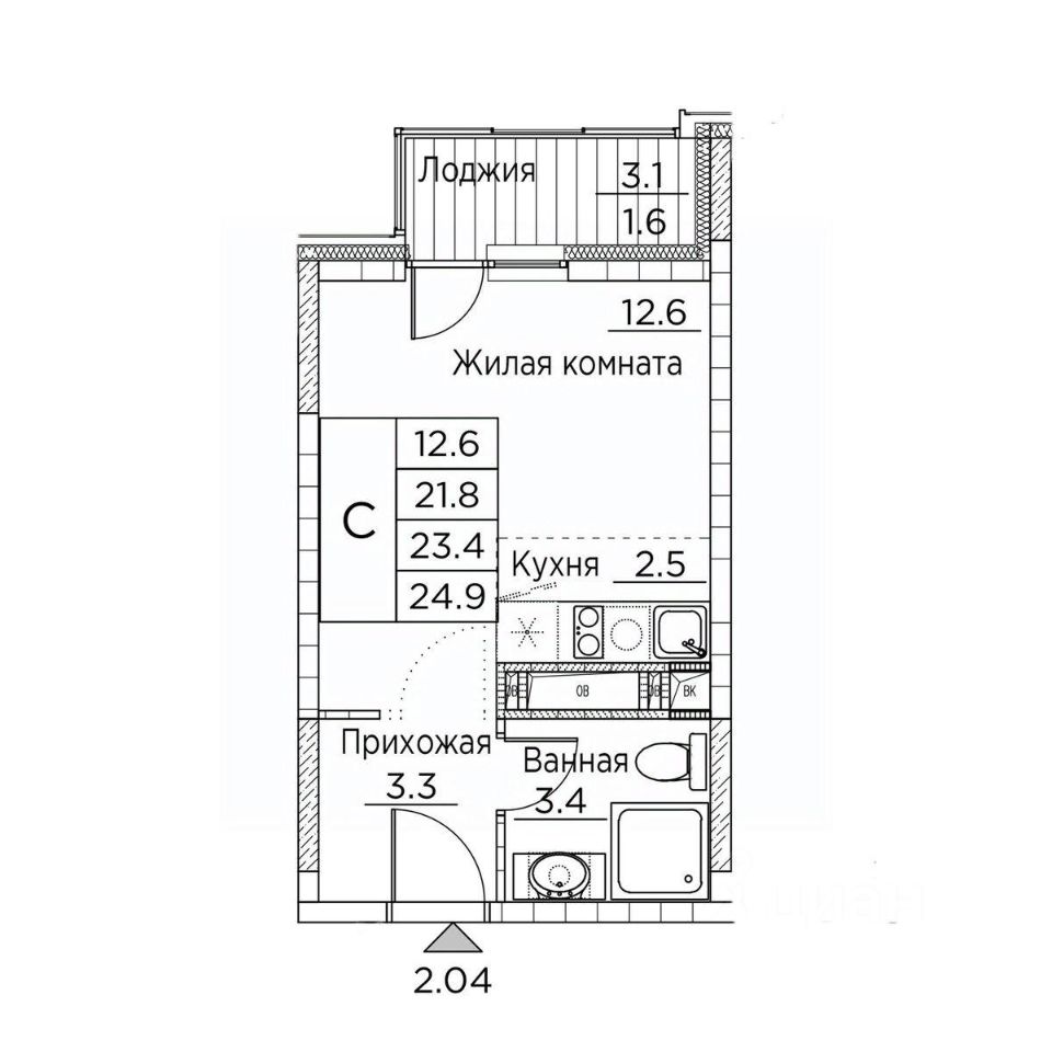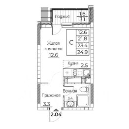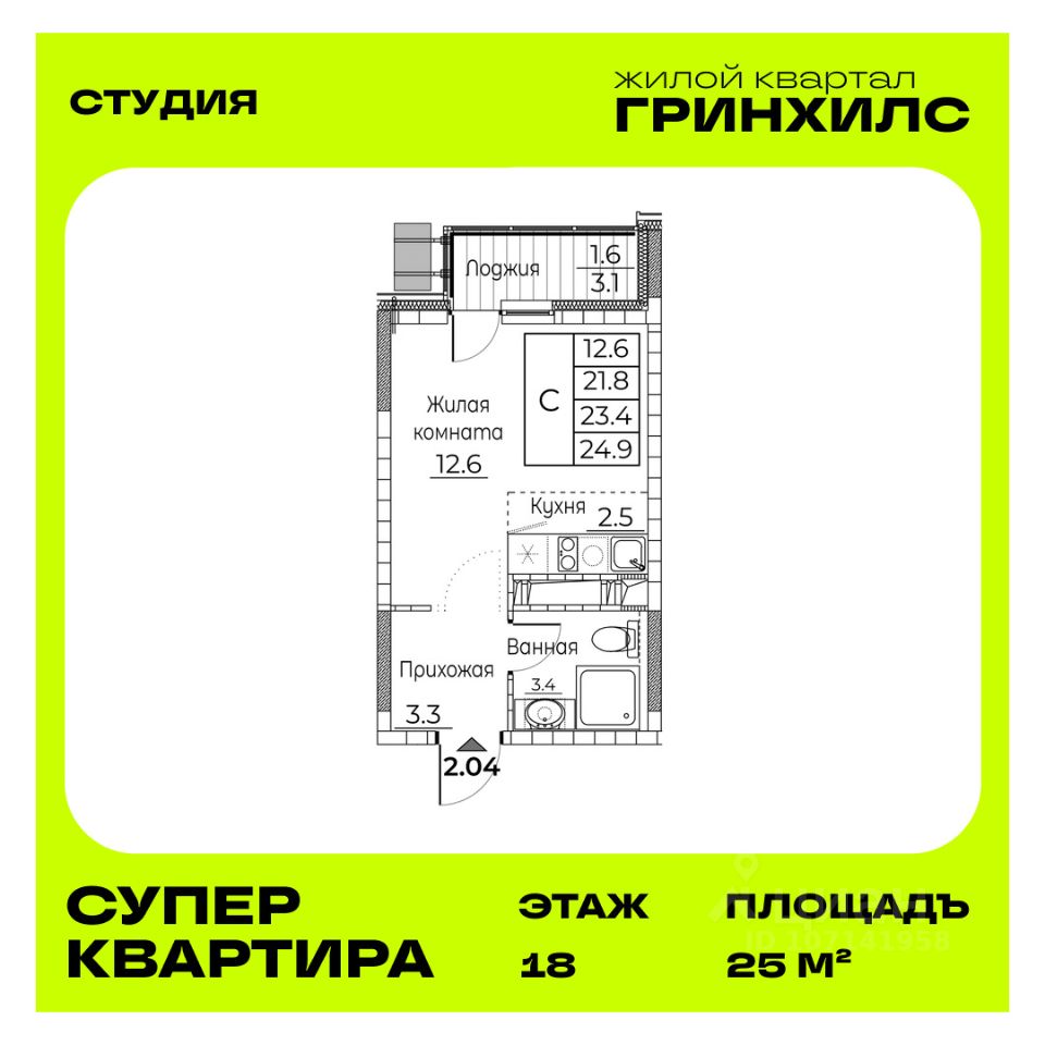 Общая площадь квартиры — 25 кв. м, этаж 18 из 21.