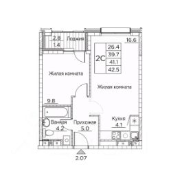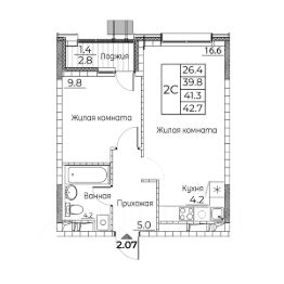 Общая площадь квартиры — 42.5 кв. м, этаж 18 из 21.