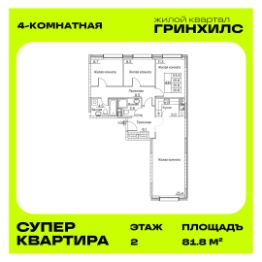 Продается 4-к квартира с черновой отделкой в ЖК "Гринхилс".