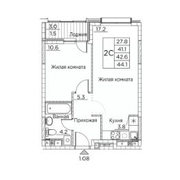 Общая площадь44,1 м²