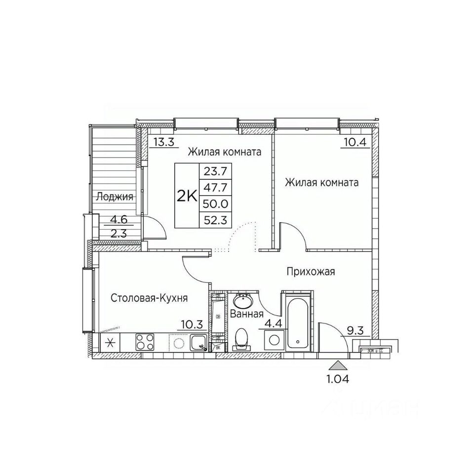 Общая площадь52,3 м²