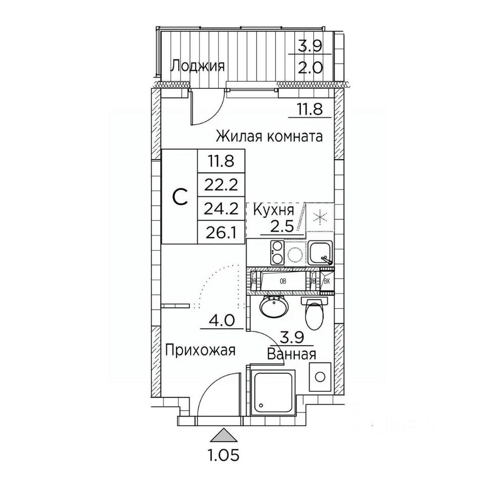 Общая площадь26,1 м²