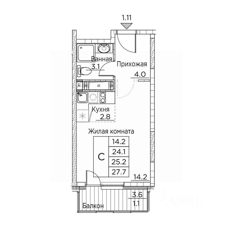 - 17 минут до ж/д вокзала;