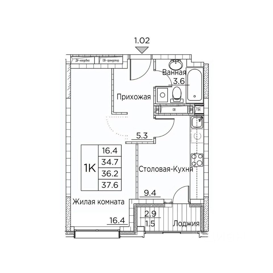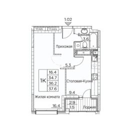 Общая площадь37,6 м²