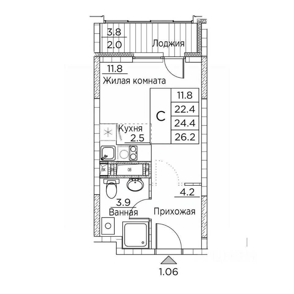 Общая площадь26,2 м²