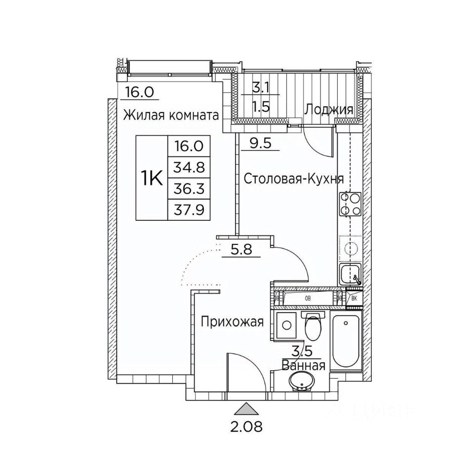 Общая площадь37,9 м²