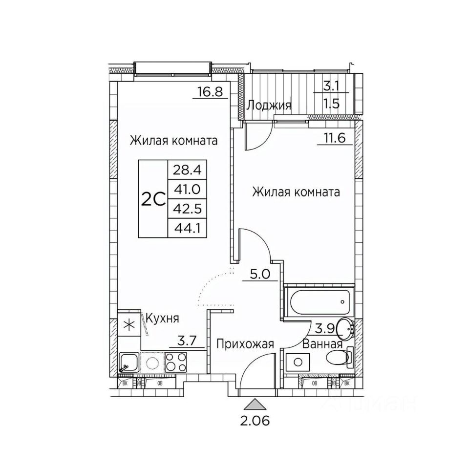 Общая площадь44,1 м²