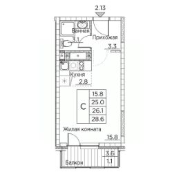 Общая площадь28,6 м²