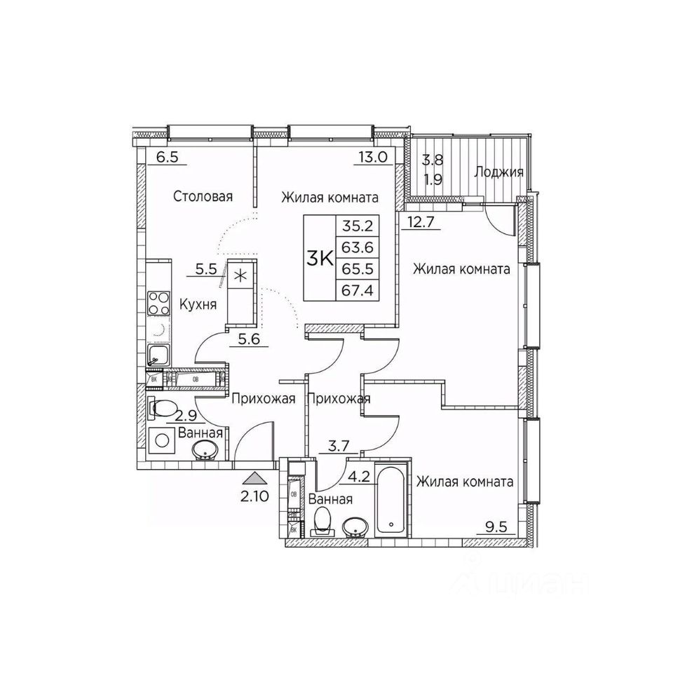 Общая площадь67,4 м²