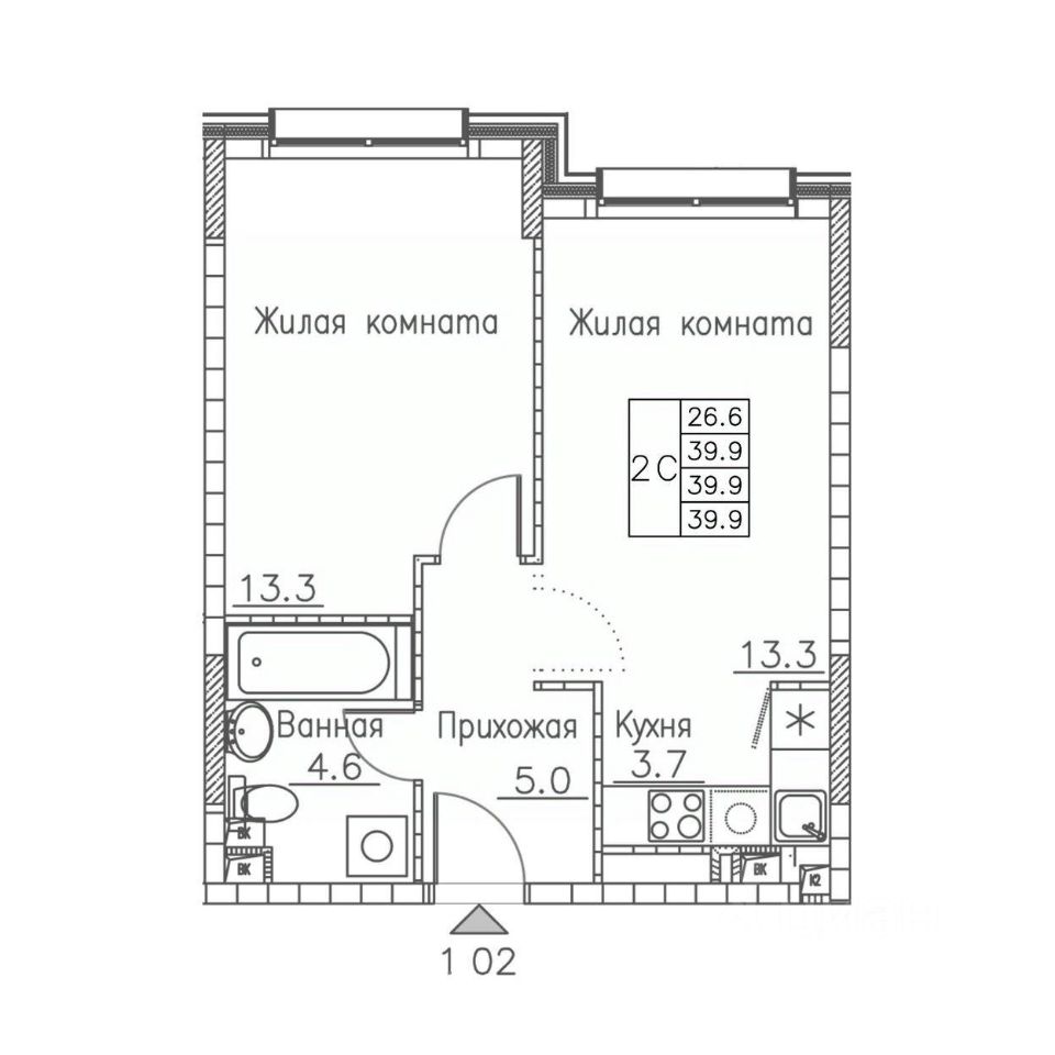 Общая площадь39,9 м²