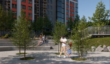 - Приватный безопасный каскадный двор-парк площадью более 4000м2, спроектирован как отдельный архитектурный объект с зонами, включающими в себя целый комплекс оборудования для детей и взрослых, озеленением и современным освещением, благодаря которому будет приятно гулять и отдыхать во дворе в вечернее и ночное время;