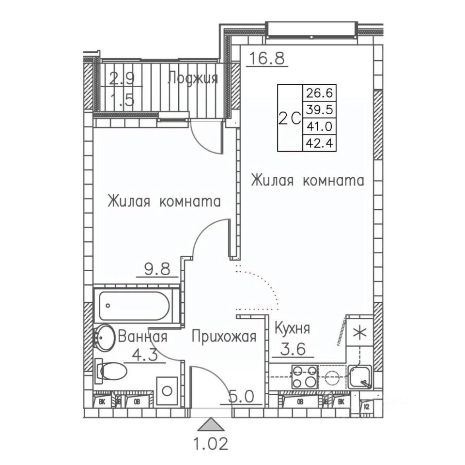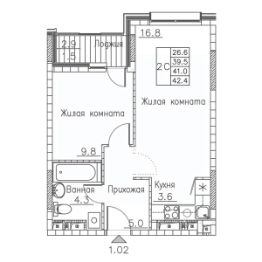 Общая площадь42,4 м²