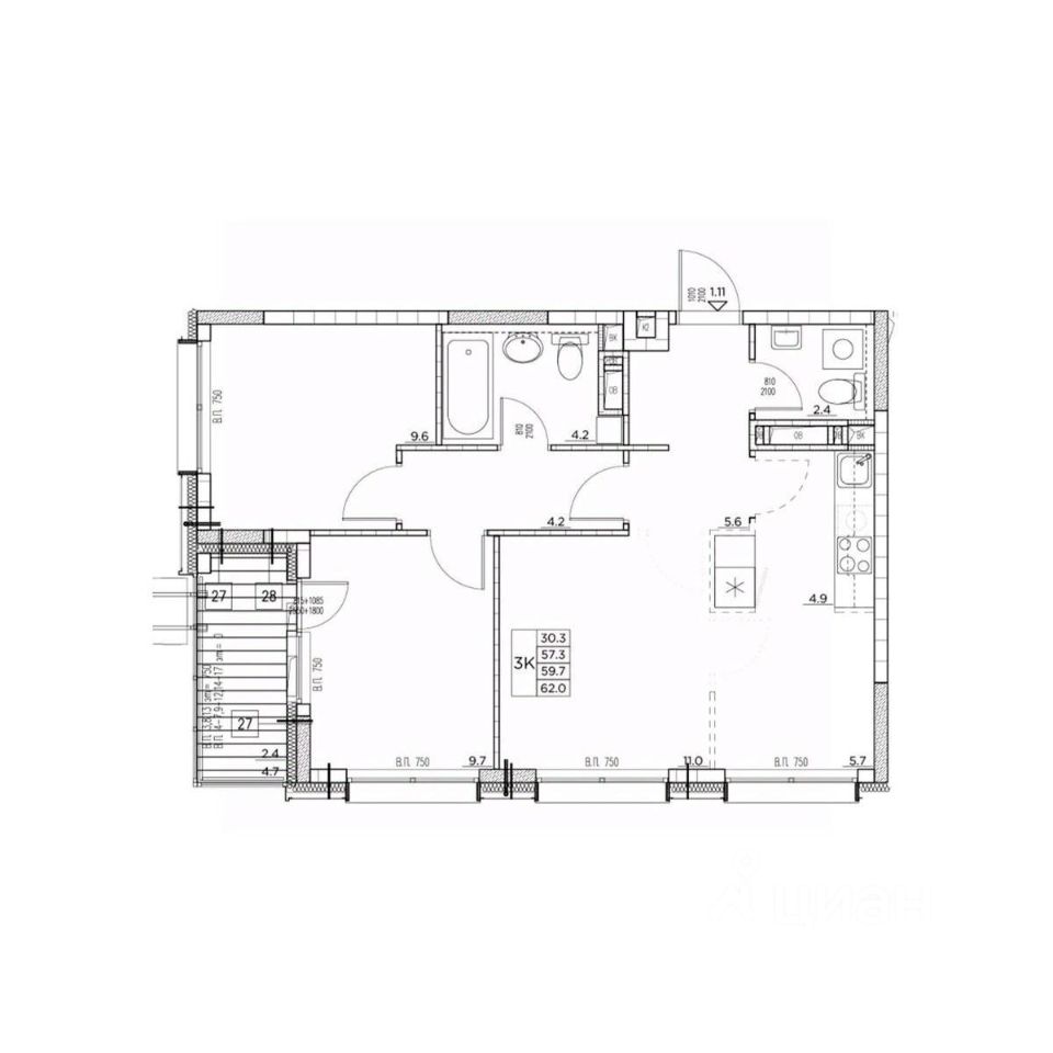 30,3 м²