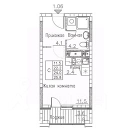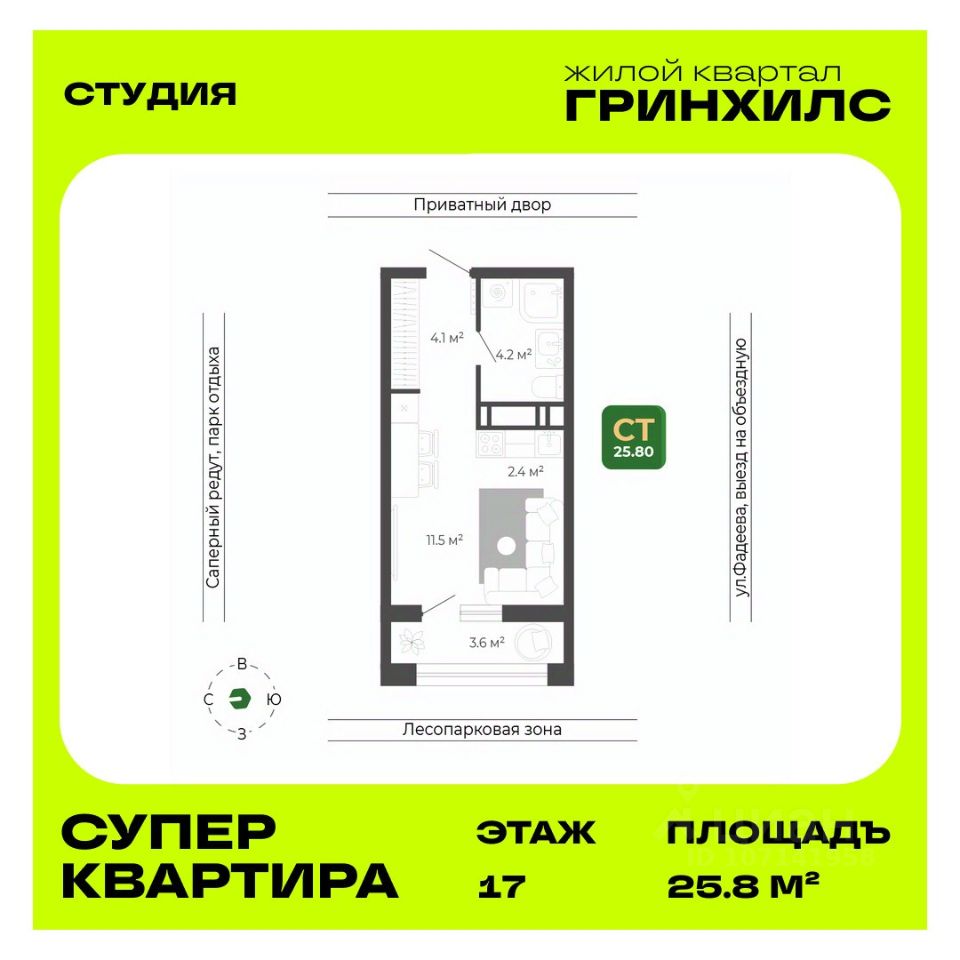 Общая площадь квартиры — 25.8 кв. м, этаж 17 из 18.