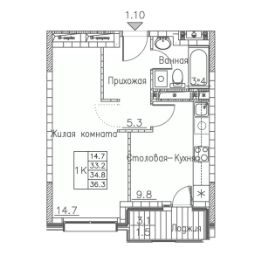 Общая площадь36,3 м²