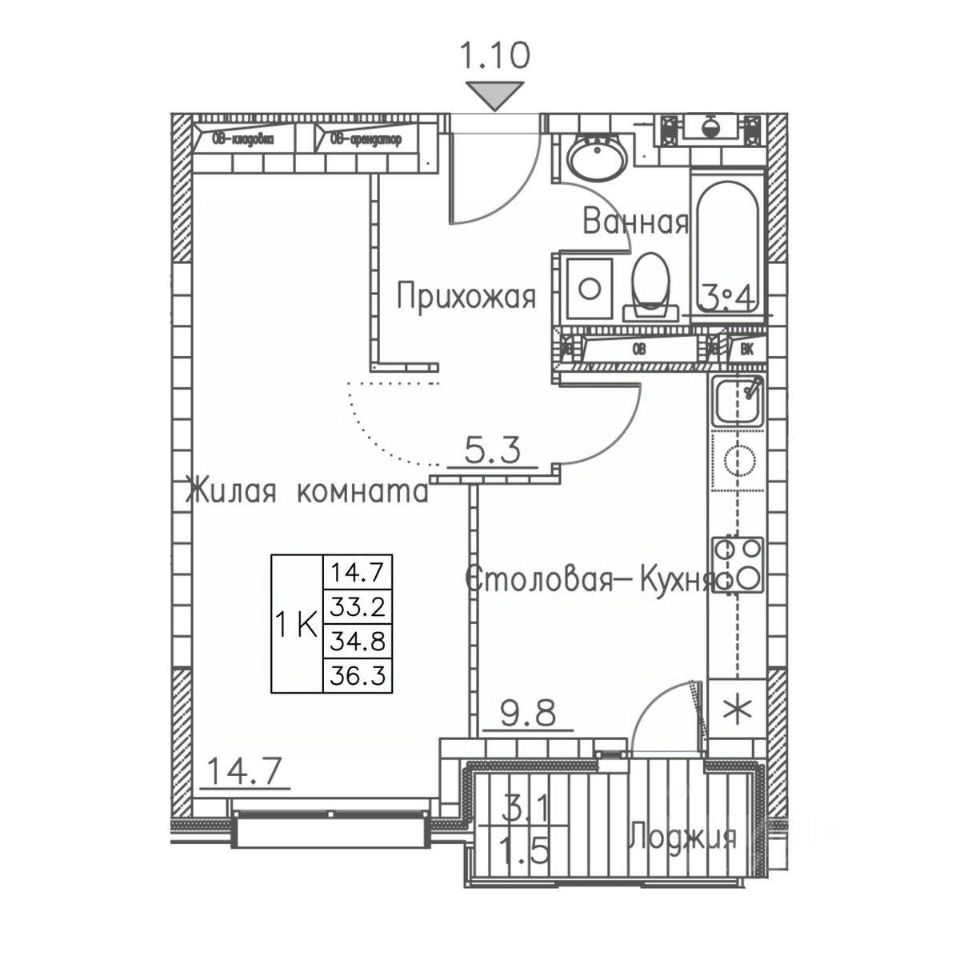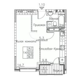 Общая площадь36,3 м²