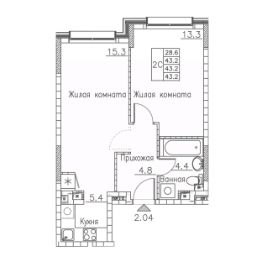 Общая площадь43,2 м²