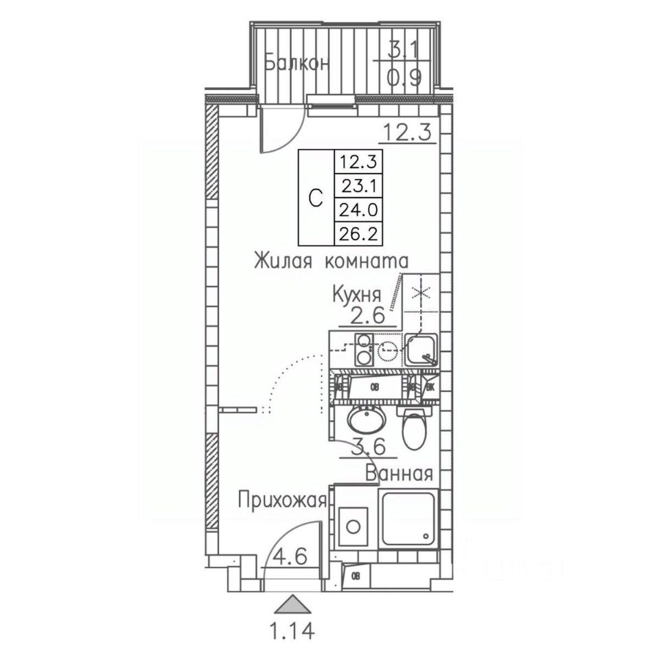 Общая площадь26 м²