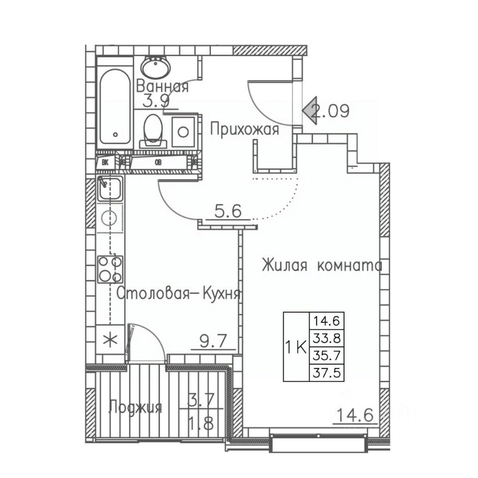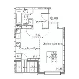 Общая площадь37,5 м²