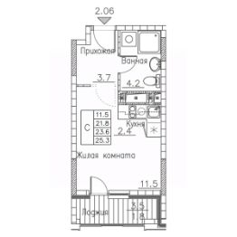 Общая площадь25,3 м²