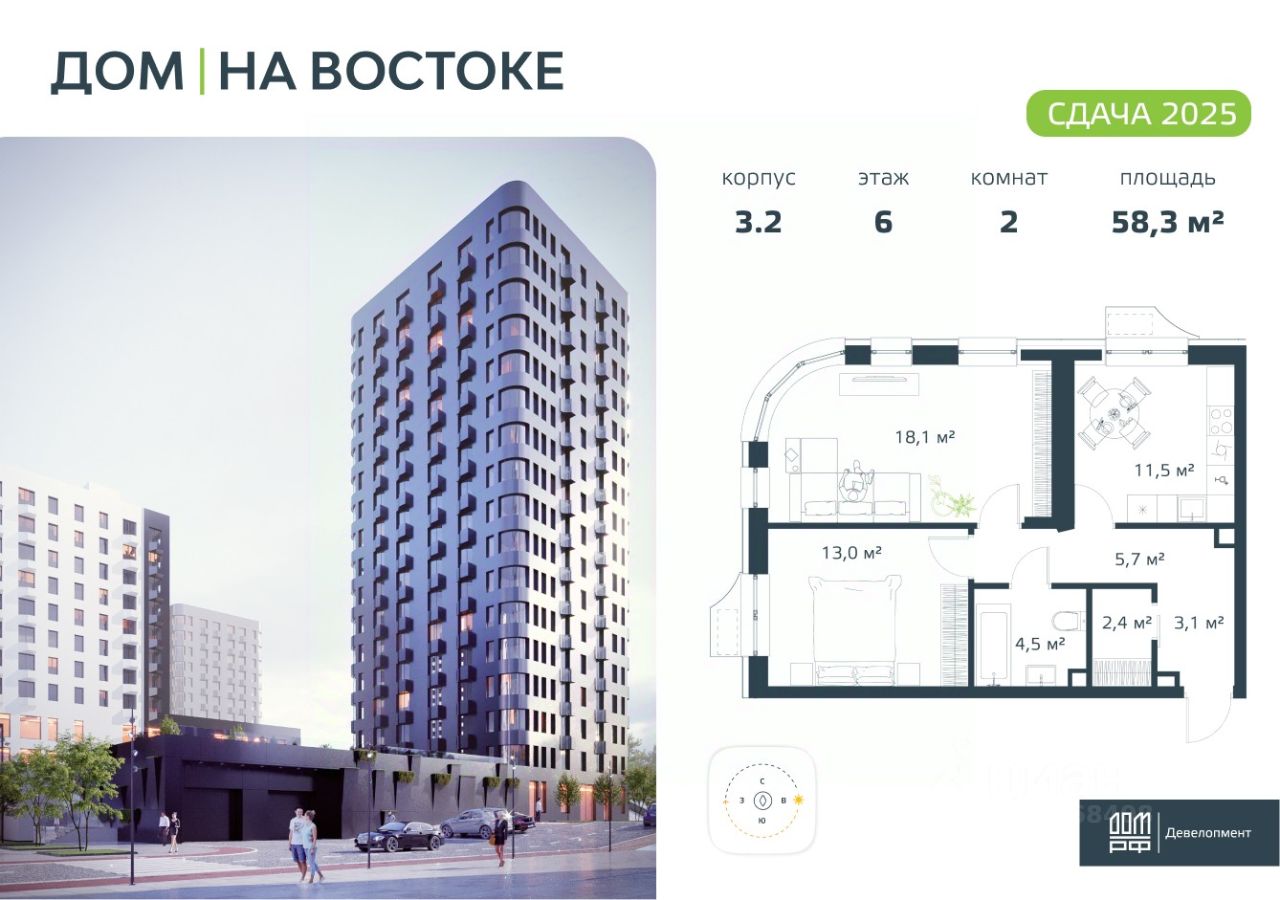 Современная 2-комнатная квартира классического формата с большой светлой гостиной и предчистовой отделкой в жилом комплексе "ДОМ на Востоке". Общая площадь 58,3 м2. Срок сдачи 4 кв. 2025 г. Монолитный дом. "ДОМ на Востоке" жилой квартал с авторской архитектурой от известного бюро KAMEN, благоустроенной территорией и собственной развитой инфраструктурой. Это флагманский проект от государственного застройщика ДОМ.РФ Девелопмент, расположенного в сердце живописной бухты Патрокл. Проект находится в перспективном, быстроразвивающемся районе города со всей инфраструктурой на берегу залива. Всего 8 минут пешком и вы на Леопардовой набережной совершаете променад или любуетесь завораживающими закатами и рассветами. До центра города и крупных торговых центров легко добраться за 20 минут на автомобиле. Преимущества лота - Высокий потолок 2,87 м в чистоте - Гардеробная комната - Большая кухня - Радиусное остекление панорамные виды - Повышенная инсоляция - 4 окна в кухне-гостиной - 2 корзины для кондиционера Отделка: В квартире будет выполнена предчистовая отделка. - Возведены перегородки из керамзита-цементных блоков - Оштукатурены стены - Выполнена стяжка пола - Произведена разводка трубопроводов, электричества, вентиляции и кондиционирования. Разводка отопления осуществляется внутри стяжки (горизонтальная), выводы под радиаторы выведены из стены. - Установлены радиаторы с терморегулятором - Выполнена шумоизоляция по полу - Установлены двухкамерные стеклопакеты и металлическая входная дверь - Заведен интернет кабель до слаботочного щита в квартире - Проведены коммуникации под установку кондиционера К моменту выдачи ключей все шумные работы будут завершены. Вам останется самая приятная часть ремонта выбор покрытия стен и пола, сантехники, мебели и аксессуаров. Инфраструктура На первых этажах домов будет все необходимое для жизни: магазины, кафе, аптеки, салоны красоты и многое другое. А для семей с детьми предусмотрены детские сады, безопасные игровые площадки и игровые комнаты. Паркинг: подземный отапливаемый с видеонаблюдением Для удобства жителей комплекса предусмотрен теплый паркинг в доме. Теперь не придется искать место для парковки, а также чистить автомобиль от снега или прогревать его в холодное время года. В паркинге также расположены кладовые помещения для хранения сезонных вещей и спортивного инвентаря. Условия покупки Продажа от надёжного государственного застройщика ДОМ.РФ Девелопмент с использованием эскроу-счетов. 100% оплата или ипотека. Сейчас действуют особые предложения по льготной ипотеке на период строительства.
