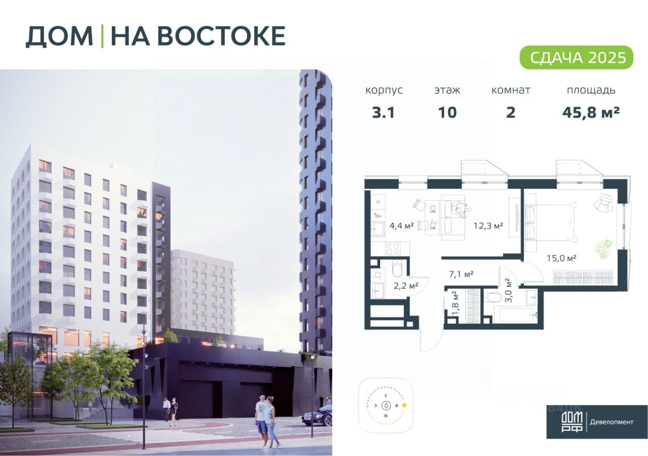 Просторная 2-комнатная квартира евроформата с повышенной инсоляцией и предчистовой отделкой в жилом комплексе "ДОМ на Востоке". Общая площадь 45,8 м2. Срок сдачи 4 кв. 2025 г. Монолитный дом. "ДОМ на Востоке" жилой квартал с авторской архитектурой от известного бюро KAMEN, благоустроенной территорией и собственной развитой инфраструктурой. Это флагманский проект от государственного застройщика ДОМ.РФ Девелопмент, расположенного в сердце живописной бухты Патрокл. Проект находится в перспективном, быстроразвивающемся районе города со всей инфраструктурой на берегу залива. Всего 8 минут пешком и вы на Леопардовой набережной совершаете променад или любуетесь завораживающими закатами и рассветами. До центра города и крупных торговых центров легко добраться за 20 минут на автомобиле. Преимущества квартиры - Современная планировка евроформата - Высокий потолок 2,87 м в чистоте - 2 санузла - Повышенная инсоляция 2 окна в спальне, 2 окна в кухне-гостиной - Гардеробная комната - Две корзины для кондиционеров Отделка: В квартире будет выполнена предчистовая отделка. - Возведены перегородки из керамзитобетонных блоков - Произведена разводка электричества - Трубы отопления проведены внутри стяжки пола, выводы под радиаторы расположены на стене - Оштукатурены стены - Выполнена стяжка пола - Установлены радиаторы с терморегулятором - Выполнена шумоизоляция пола - Установлены окна с двухкамерными стеклопакетами и металлическая входная дверь - В квартиру заведен интернет-кабель - Выведены коммуникации для установки кондиционера К моменту выдачи ключей все шумные работы будут завершены. Вам останется самая приятная часть ремонта выбор финишных отделочных материалов, сантехники, мебели и аксессуаров. Инфраструктура На первых этажах домов будет все необходимое для жизни: магазины, кафе, аптеки, салоны красоты и многое другое. А для семей с детьми предусмотрены детские сады, безопасные игровые площадки и игровые комнаты. Паркинг: подземный отапливаемый с видеонаблюдением Для удобства жителей комплекса предусмотрен теплый паркинг в доме. Теперь не придется искать место для парковки, а также чистить автомобиль от снега или долго прогревать его в холодное время года. В паркинге также расположены кладовые помещения для хранения сезонных вещей и спортивного инвентаря. Условия покупки Продажа от надёжного государственного застройщика ДОМ.РФ Девелопмент с использованием эскроу-счетов. 100% оплата или ипотека. Сейчас действуют особые предложения по льготной ипотеке на период строительства.