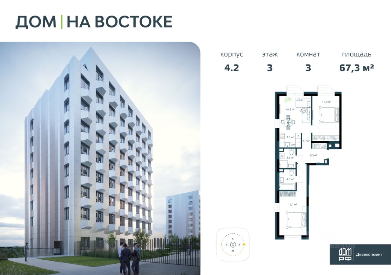 Просторная 3-комнатная квартира евроформата с повышенной инсоляцией и предчистовой отделкой в жилом комплексе "ДОМ на Востоке". Общая площадь 67,3 м2. Срок сдачи 2 кв. 2026 г. Монолитный дом. "ДОМ на Востоке" жилой квартал с авторской архитектурой от известного бюро KAMEN, благоустроенной территорией и собственной развитой инфраструктурой. Это флагманский проект от государственного застройщика ДОМ.РФ Девелопмент, расположенного в сердце живописной бухты Патрокл. Проект находится в перспективном, быстроразвивающемся районе города со всей инфраструктурой на берегу залива. Всего 8 минут пешком и вы на Леопардовой набережной совершаете променад или любуетесь завораживающими закатами и рассветами. До центра города и крупных торговых центров легко добраться за 20 минут на автомобиле. Преимущества квартиры - Современная планировка евроформата - Высокий потолок 2,9 м в чистоте - 2 санузла - Повышенная инсоляция 2 окна в спальне, 2 окна в кухне-гостиной - Гардеробная комната - Две корзины для кондиционеров Отделка: В квартире будет выполнена предчистовая отделка. - Возведены перегородки из керамзитобетонных блоков - Произведена разводка электричества - Трубы отопления проведены внутри стяжки пола, выводы под радиаторы расположены на стене - Оштукатурены стены - Выполнена стяжка пола - Установлены радиаторы с терморегулятором - Выполнена шумоизоляция пола - Установлены окна с двухкамерными стеклопакетами и металлическая входная дверь - В квартиру заведен интернет-кабель - Выведены коммуникации для установки кондиционера К моменту выдачи ключей все шумные работы будут завершены. Вам останется самая приятная часть ремонта выбор финишных отделочных материалов, сантехники, мебели и аксессуаров. Инфраструктура На первых этажах домов будет все необходимое для жизни: магазины, кафе, аптеки, салоны красоты и многое другое. А для семей с детьми предусмотрены детские сады, безопасные игровые площадки и игровые комнаты. Паркинг: подземный отапливаемый с видеонаблюдением Для удобства жителей комплекса предусмотрен теплый паркинг в доме. Теперь не придется искать место для парковки, а также чистить автомобиль от снега или долго прогревать его в холодное время года. В паркинге также расположены кладовые помещения для хранения сезонных вещей и спортивного инвентаря. Условия покупки Продажа от надёжного государственного застройщика ДОМ.РФ Девелопмент с использованием эскроу-счетов. 100% оплата или ипотека. Сейчас действуют особые предложения по льготной ипотеке на период строительства.