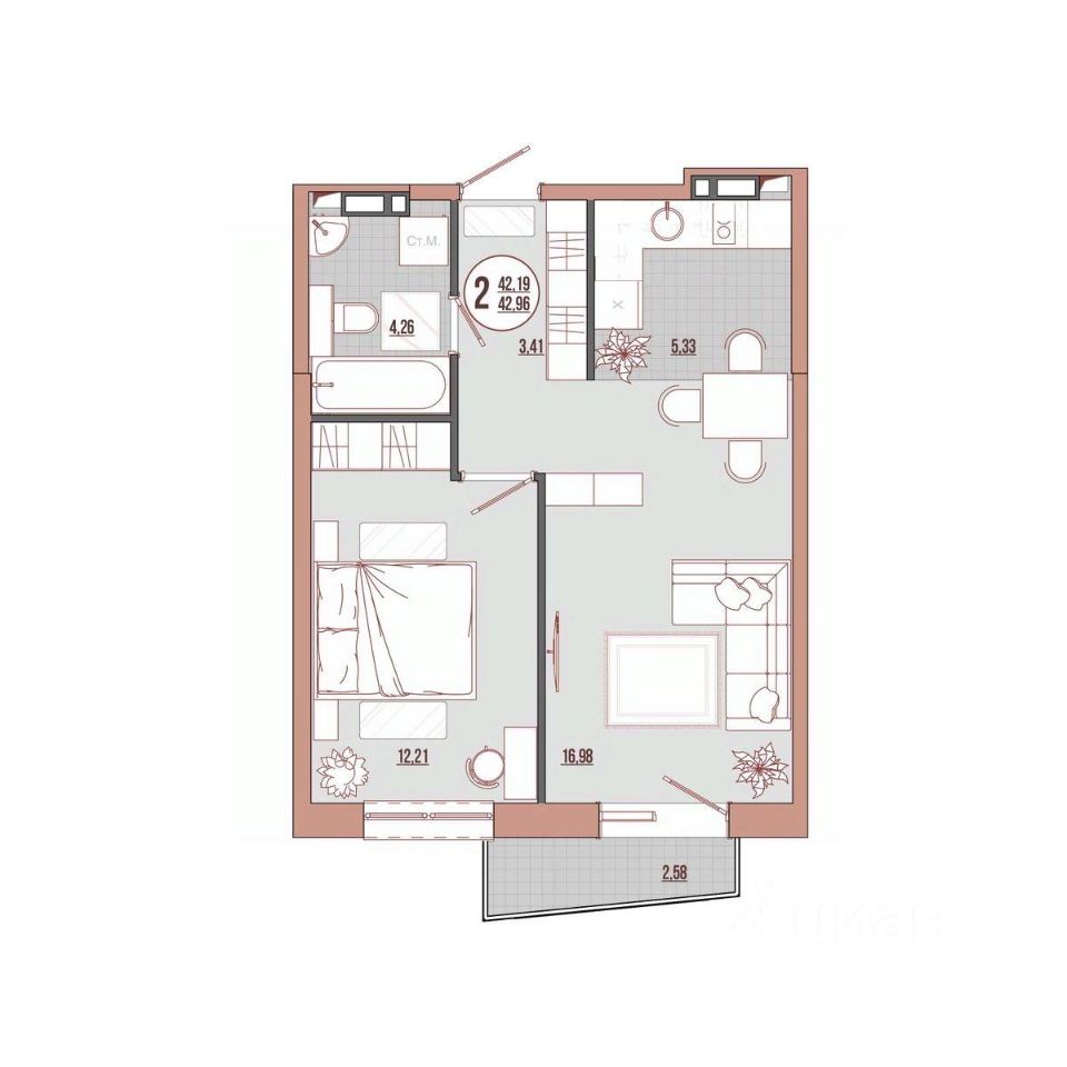 Продаётся 2-комнатная квартира в строящемся доме (Корпус 1), срок сдачи: III-кв. 2026, общей площадью 42.96 кв.м., на 8 этаже. Новый жилой дом от застройщика "СЗ Стоунлэнд" расположен по адресу: Россия, Приморский край, Владивосток, улица Адмирала Юмашева