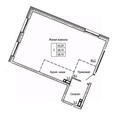 Продаётся 2-комнатная квартира в строящемся доме (Корпус 1), срок сдачи: II-кв. 2026, общей площадью 58.1 кв.м., на 9 этаже.